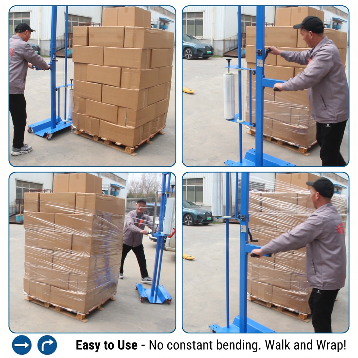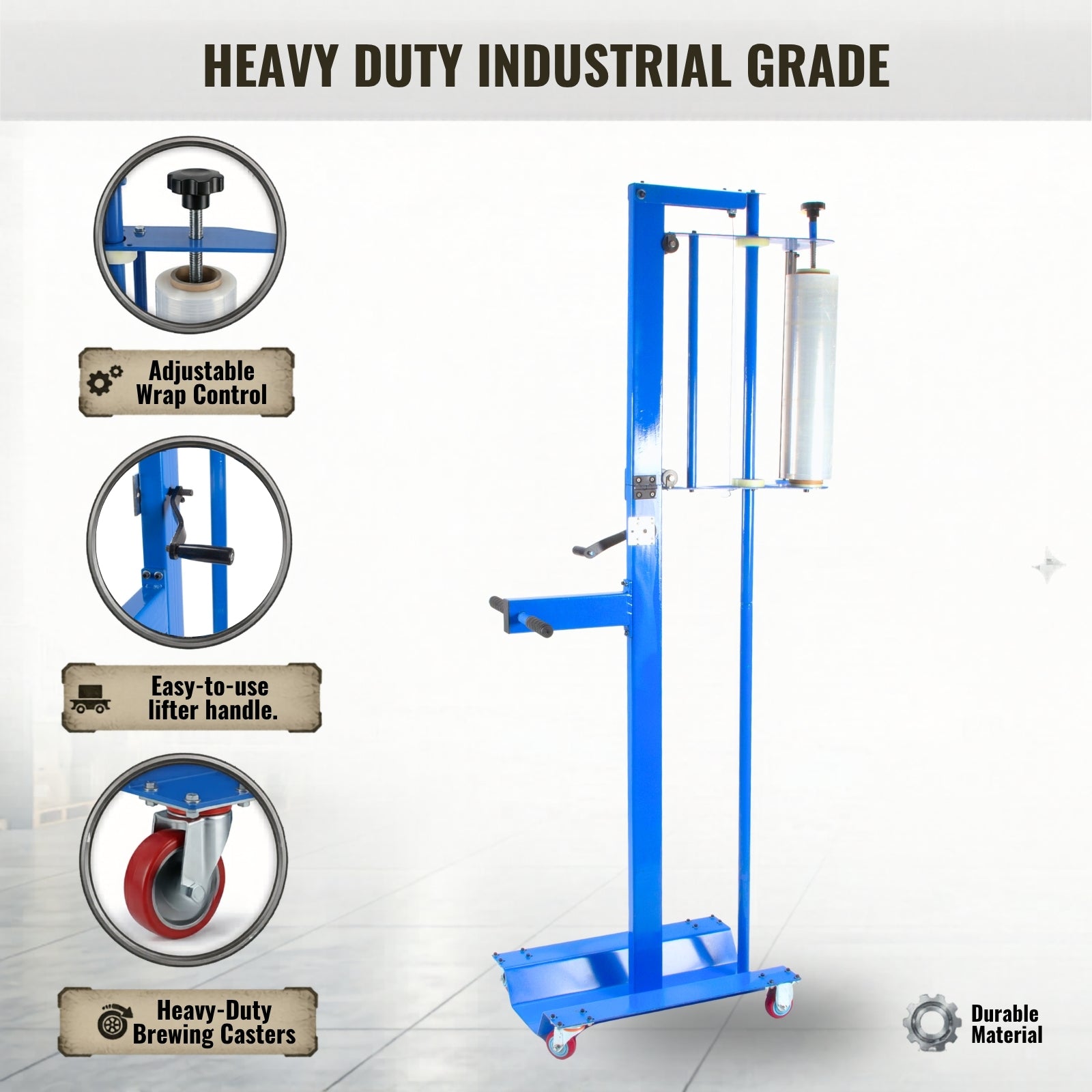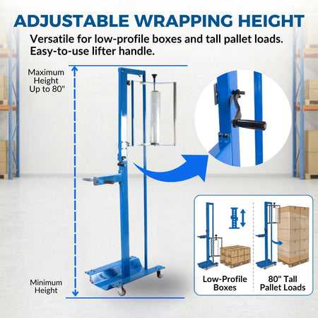 Rockcub Mobile Pallet Stretch Wrap Machine - Manual Pallet Wrapper with Adjustable Height (Up to 80") - Ergonomic Hand Stretch Film Dispenser for Warehouse, Factory, and Logistics
